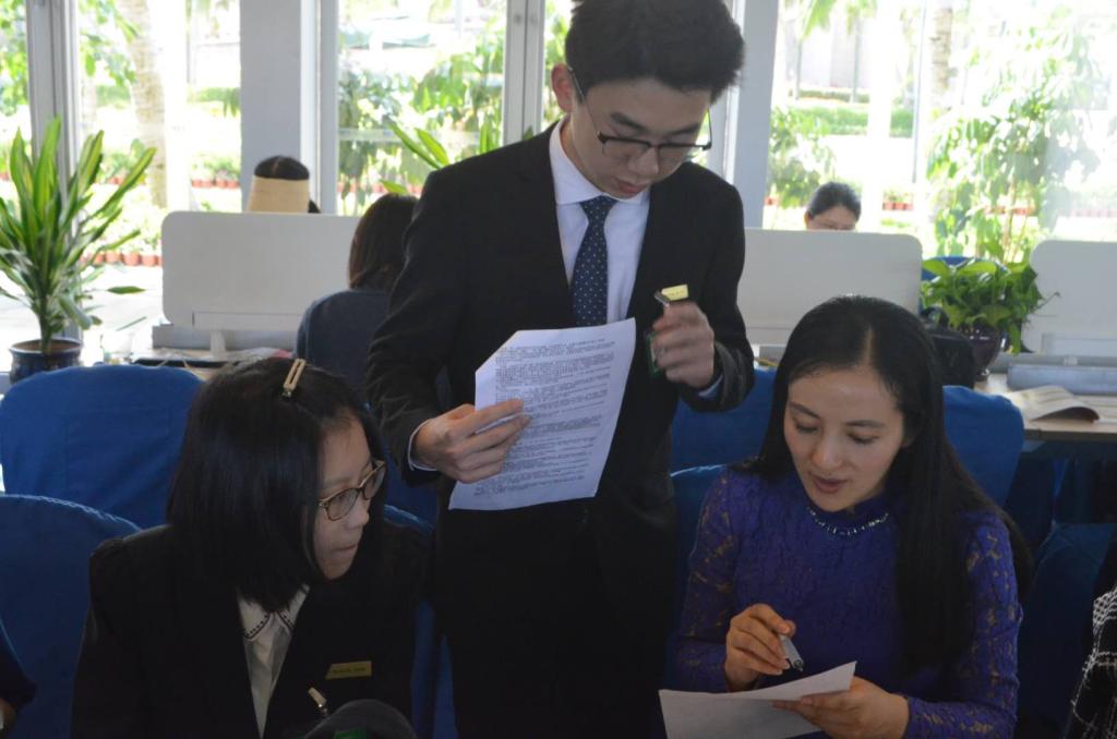 吴春蓉,1507091,博鳌论坛志愿者,谈及此次志愿者经历,她说:作为一名志愿者,我的第一个职位是博鳌亚洲论坛大酒店管家部客房服务中心的员工,具体内容包括housekeeping以及在办公室接电。Housekeeping让我第一次接触到基层服务人员,她们中年龄较大的阿姨居多,一天的工作从晨会开始,主管布置当天任务,然后我们开始学习做房,包括了解酒店各种客房的配套设施以及如何铺床,套枕套被套等。关于接电话,我需要熟悉酒店各部门的电话号码,每接一个电话要记录时间,内容,致电人和接电人。这些服务让我体会到了各行各业的不易。直到三月底的某一天,我被调到博鳌亚洲论坛中外媒体的工作地点新闻中心当翻译。来到新闻中心的第一天,领导安排我接待外宾,第二天安排我给其他志愿者英语培训,这对我来说是很大的挑战,但作为一个志愿者,就应该克服各种难题,尽自己的努力为他人服务,最终我顺利完成了对其他志愿者英语培训。在这里,我不仅收获了成长与汗水,而且真切的体会到了志愿者的快乐。