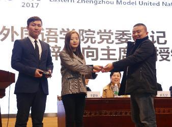 11月26日中午11点,第二届龙子湖高校模拟联合国大会于图书馆第二报告厅胜利闭幕。郑州航空工业管理学院团委副书记王茜和外国语学院党总支副书记耿三琳分别为获奖代表们颁发了荣誉证书,郑州航空工业管理学院模拟联合国协会学术指导老师岳豪为大会作了总结发言,肯定了大家的努力,并鼓励代表们继续努力,希望同学们的模联之路越走越远。