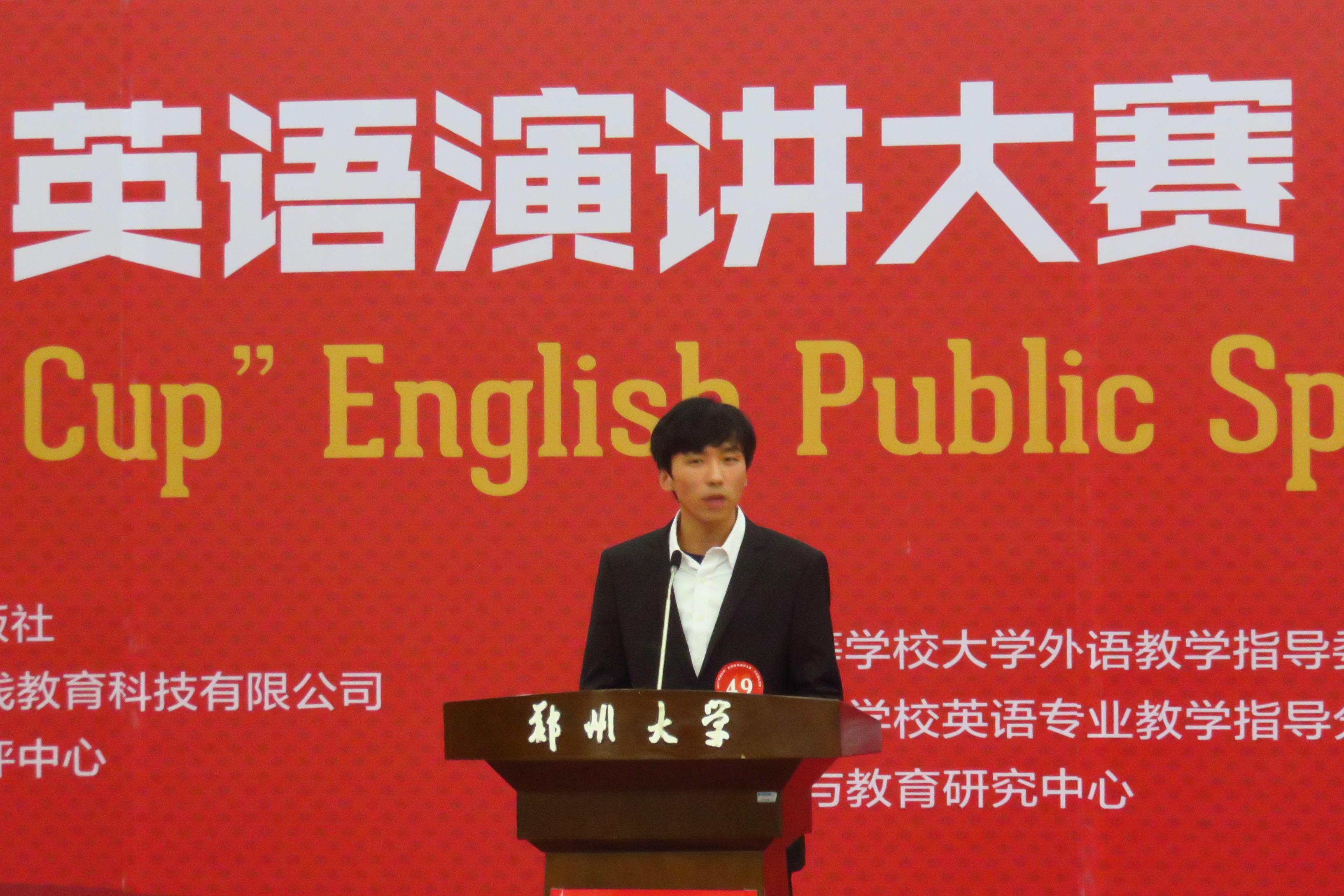 此次英语演讲比赛的主题为China:The Global View。整个大赛共分为校园选拔赛、河南省赛区复赛及河南省赛区决赛三部分。由全省各高校分别组织校园选拔赛推荐选手参加河南省赛区复赛,我校经过层层选拔,分别推荐了陈美和郭剑钊两位同学参加河南省赛区复赛。