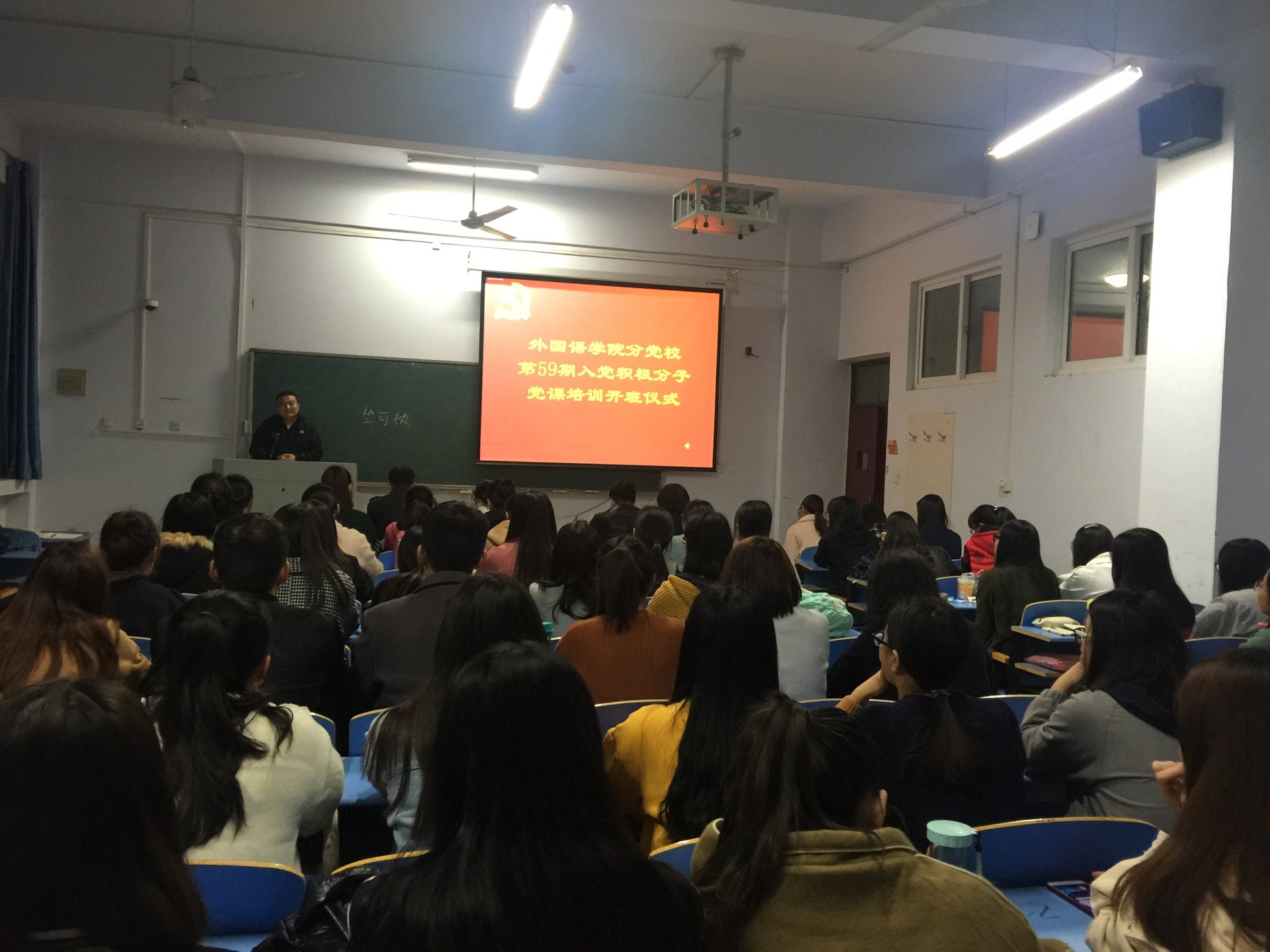 为了进一步做好我院入党积极分子的教育、管理和培养工作,10月17日晚7点,第59期入党积极分子培训班开班典礼在05A204教室举行。党总支书记许峰、团总支书记李金隆、学生第二党支部书记王高迪、学生第一党支部组织委员付昊出席开班典礼。典礼由学生第一党支部书记王珊主持。