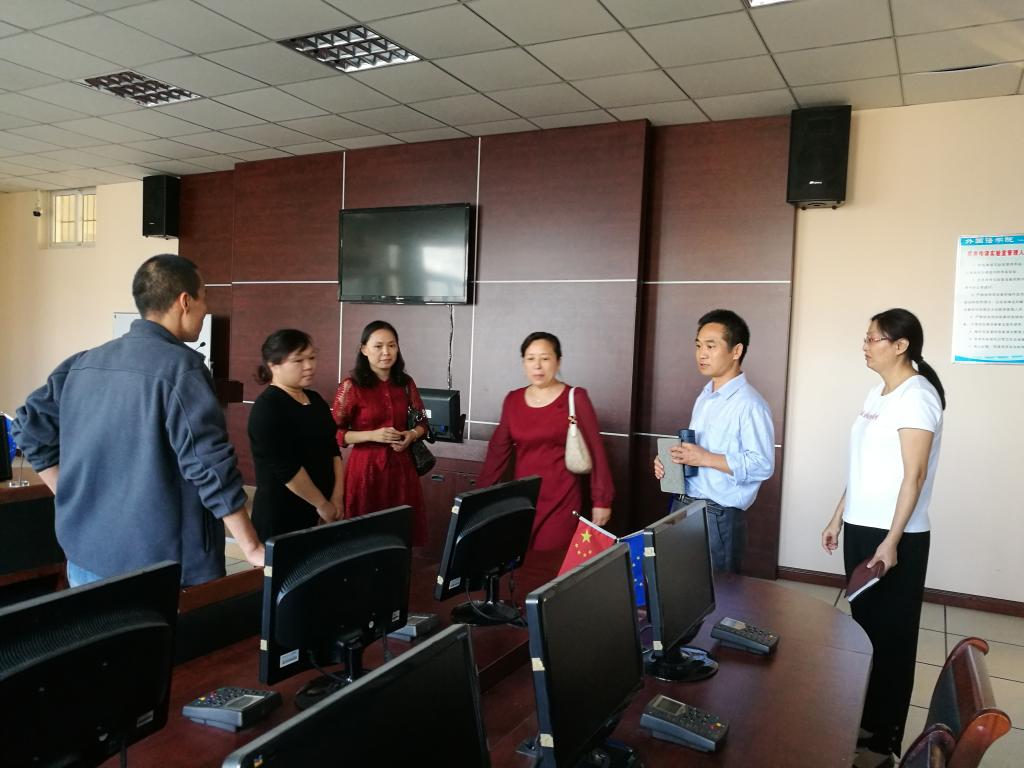 信阳师范学院外国语学院蔡满园院长、朱丽副院长首先简要介绍了信阳师院外国语学院的发展现状,郭院长也向对方介绍了郑州航院外国语学院基本情况。随后,双方就学科建设、师资引进及培养、实验室建设、学生管理等进行了深入交流。最后郭院长一行在信阳师院外院领导的陪同下参观了翻译实验室、同声传译实验室等多个语言实验室,并就设备使用情况、管理办法交流了意见。