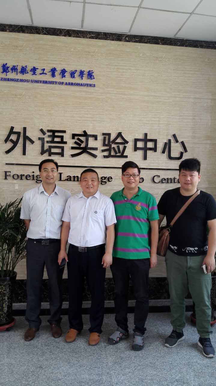 2017年6月2日上午,河南中医药大学外国语学院副院长朱剑飞、实验室老师张磊一行2人来访我院外语实验中心,实地参观和了解我校外语实验室发展和建设情况。