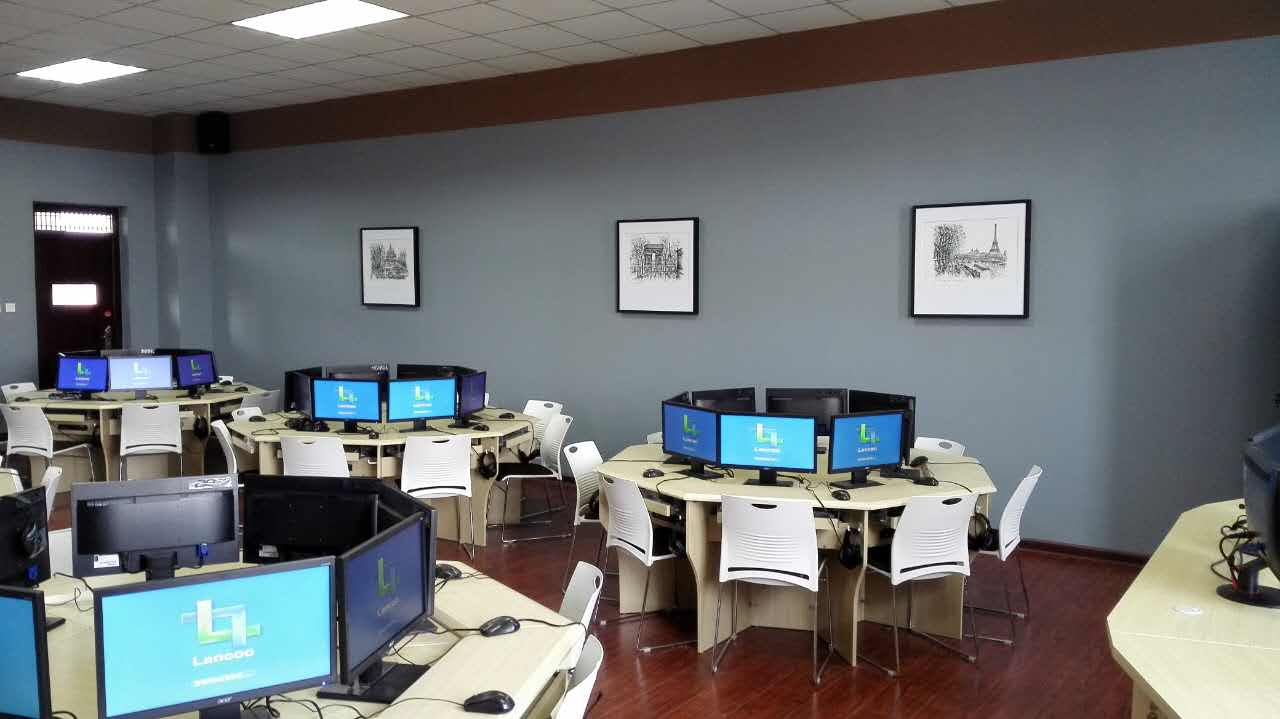 为了能够既满足传统外语实验教学的需求,又能够有所创新。外国语学院和实验室与设备管理处经过反复论证、调研和考察,对语音室文化建设、环境布局等进行了优化和创新设计,部分语音室采用了八边形讨论桌椅形式,适应新时代大学生个性化外语学习的特点,充分满足外语听说讨论、商务英语实训、翻译实训、英语写作实训、外语自主学习等实验教学和实训的需求,实现一室多用,提高设备的利用率。