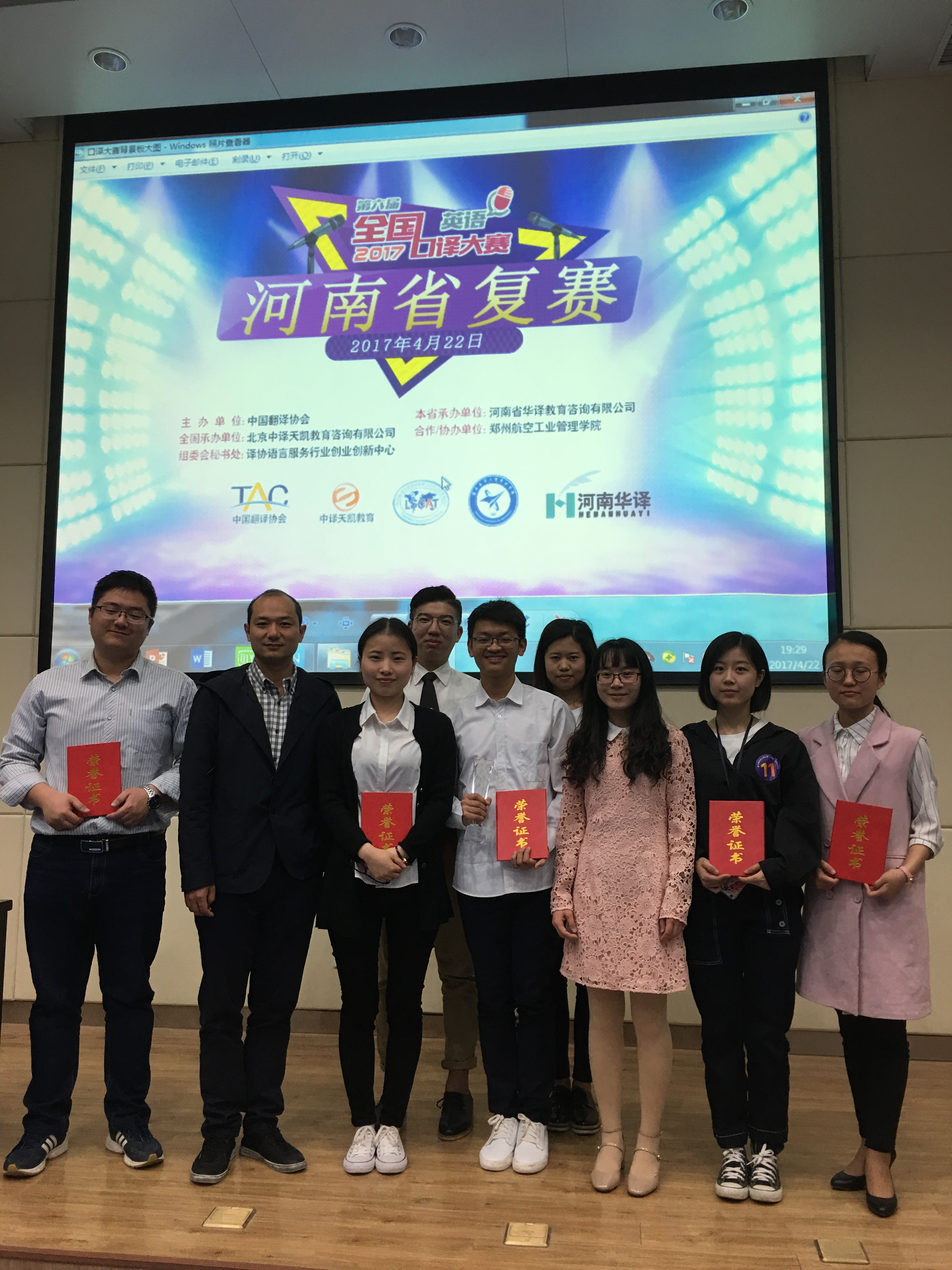 2017年4月22日,第六届全国口译大赛(英语)河南省复赛在我校图书馆第三、第四报告厅举行。全国口译大赛由中国翻译协会主办,我省复赛由河南省华译教育咨询有限公司承办,郑州航空工业管理学院为合作协办单位。