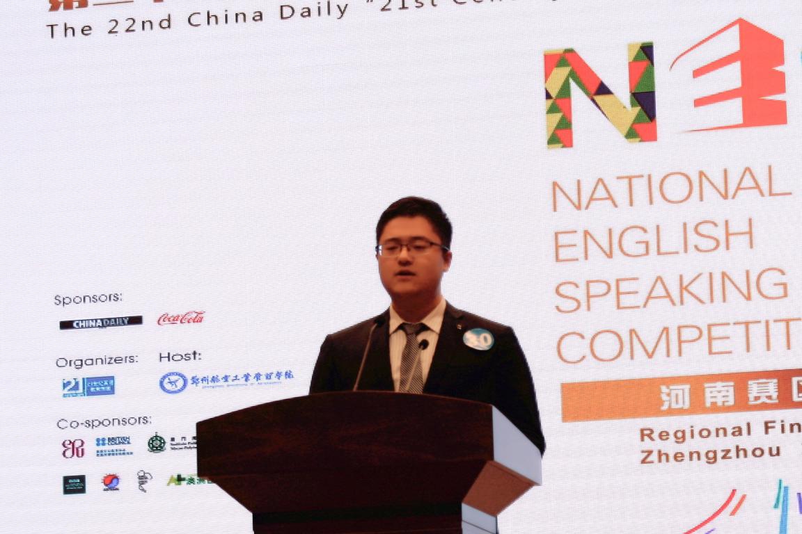 12月18日,第二十二届中国日报社“21世纪•可口可乐杯”全国英语演讲比赛河南赛区决赛于我院图书馆第一报告厅举行。此次全国英语演讲比赛由中国日报社主办,郑州航院承办。参加此次比赛的评委及嘉宾有:郑州航空工业管理学院副校长贺金社、教务处处长颜敏、外国语学院院长郭银玲、以及来自河南大学等兄弟院校的外国语学院领导。来自全省40多所高校的 35名选手参加了比赛,我校外国语学院也有3名选手参加决赛。