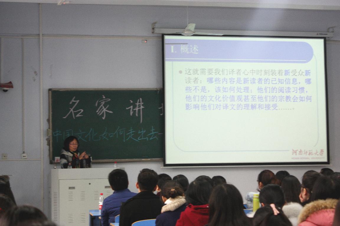 12月2日下午,受外国语学院邀请,河南师范大学赵文静教授在东校区05B207教室为我院师生做了题为“中国文化如何走出去——翻译教学的新视野”的学术讲座。讲座由外国语学院院长郭银玲主持。