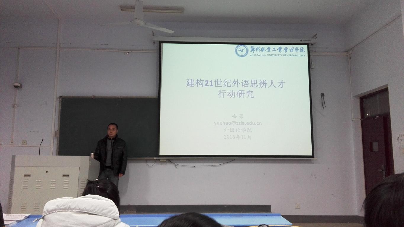 11月22号下午,外国语学院岳豪老师在05B107为学生做了“建构21世纪外语思辨人才行动研究”的主题讲座。