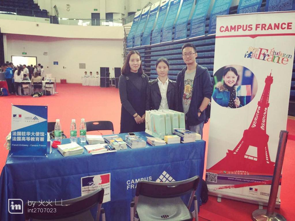 2016年10月17日,第八届国际研究生奖学金信息说明会(IGSF)在郑州大学新校区顺利举行,我校法语专业2013级火燕语、赵东方、张燕燕三名同学积极参加法国高等教育署所举办的志愿者活动。活动当天,学生们早早排起长队等候入场,来自世界各地的多所大学为同学们出国深造提供了资金平台。