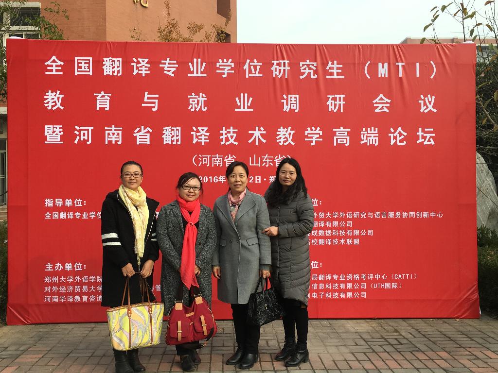 11月12日,全国翻译专业学位研究生(MTI)教育与就业(河南省、山东省)调研会议暨河南省翻译技术教学高端论坛在郑州大学外语学院召开,外语学院院长郭银玲、副院长史春柳等一行四人参加了会议。