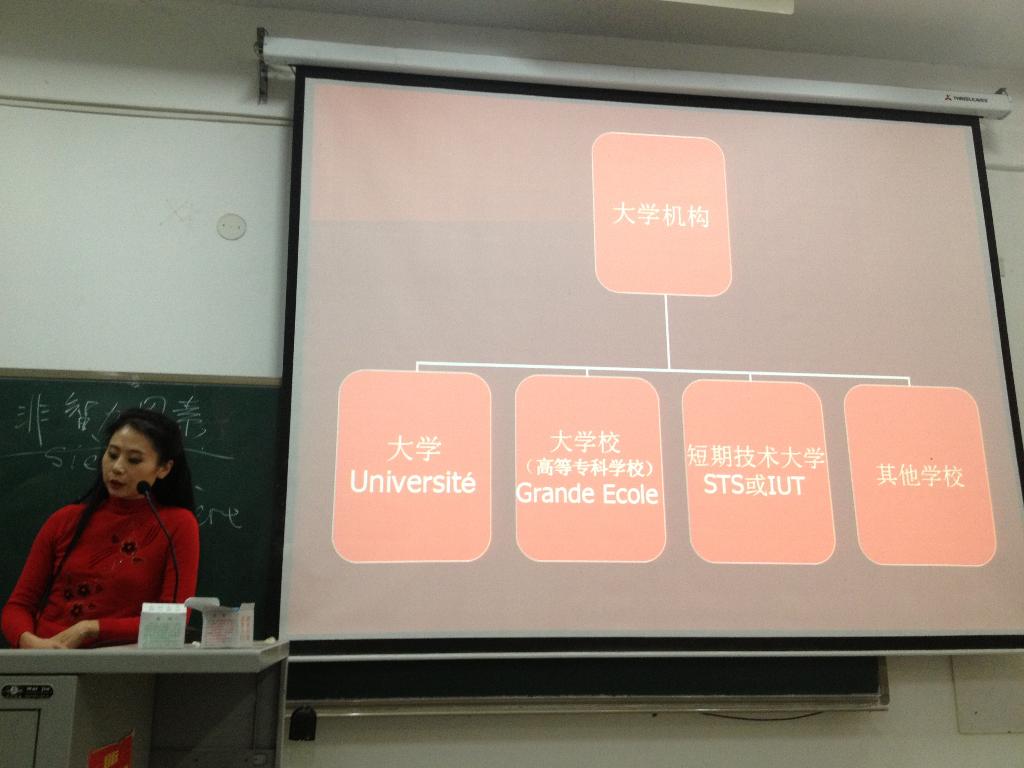 蔡教授结合个人经历,讲了这些年来她在中法两国教育、办学方面的理念和心得。在她看来,法国高等教育的基本任务除了传授知识以外,则更加注重于学科的实用性。她认为,大学的性质是科学、文化性公共机构,培养出来的应该是对社会行业有调控能力及预测其未来发展趋势的宏观性高层次人才,而不是被动地追在用人单位身后的毕业生。她鼓励学生走出国门,亲身探索这个世界,丰富自己的人生阅历。她也指出高考仅仅是人生中的一次经历,进入大学后就等于重新洗牌,同学们应该摒弃过去,克服不足,努力扎实专业基本功,谋求一个更将美好的未来。随后,苗老师又为大家详细介绍了一些关于赴法国留学的信息,包括如何自己申请大学,怎么选择学校,如何办理签证以及法国生活的基本情况和日常开销等。讲座结束后,两位老师耐心地聆听了学生的问题,均给以了详细的解答。