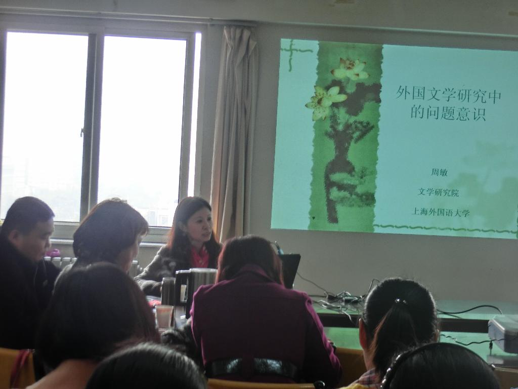 2013年11月12日,上海外国语大学文学研究院专职研究员,硕士生导师周敏教授应邀为外语系做了题为“外国文学中的问题意识”的学术讲座。讲座在南校区资料室举行,由外语系许峰教授主持,外语系全体老师和部分学生代表聆听了这次讲座。