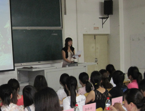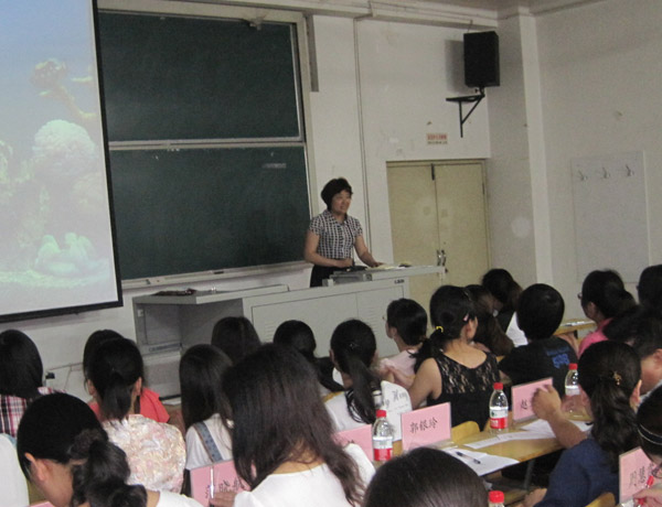 外语系副主任陈静首先宣读了大赛规则和评委名单,在外语系全体教师和学生代表的热烈掌声中,比赛正式开始。决赛形式为20分钟示范课,包括课程绪论和课程演示,按照赛前抽签的顺序,彭璐琪等八位教师依次进行课程示范。为体现客观、公平原则,决赛采用当堂听课、现场打分的方式。讲课期间,参赛教师用心授课,精彩纷呈;由外语系教授和教研室主任组成的评委们认真听课,谨慎评价。