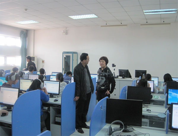 外语系首次网考历时两天半,共分18场,每场考试时间1个小时,题型丰富(包括短对话,长对话,篇章听写,复合式听写,篇章阅读,完型填空,翻译等),多方面考察学生的英语水平和能力。外语系教师利用蓝鸽语言学习平台,进行了此次网考的考务,组题,试卷批改等各项工作。所有学生的阅卷工作在考试结束10分钟后就完成了,学生各项得分,成绩排名,试卷分析,缺考学生名单等考试信息一目了然,方便准确,对大学英语教学工作的近期目标设立和调整起到及时有效的指导和帮助。外语系主任杨欣欣和副主任陈静到考场巡视。