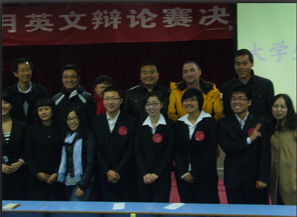 10月10日晚的01B105教室,聚满了熙熙攘攘的同学们,不时的传来一阵阵流利的英文和热烈的掌声。今晚,我校首届英语辩论赛首场比赛在这里成功举办。此次辩论赛由外语系、教务处、学生处、团委主办,外语系大学英语第一教研室和学生办承办,面向全校,是我校“外语文化月”系列活动之一,吸引了大量同学前来观看。外语系老师蒋夏、刘艳芳、邹鹏举等老师担任评委。