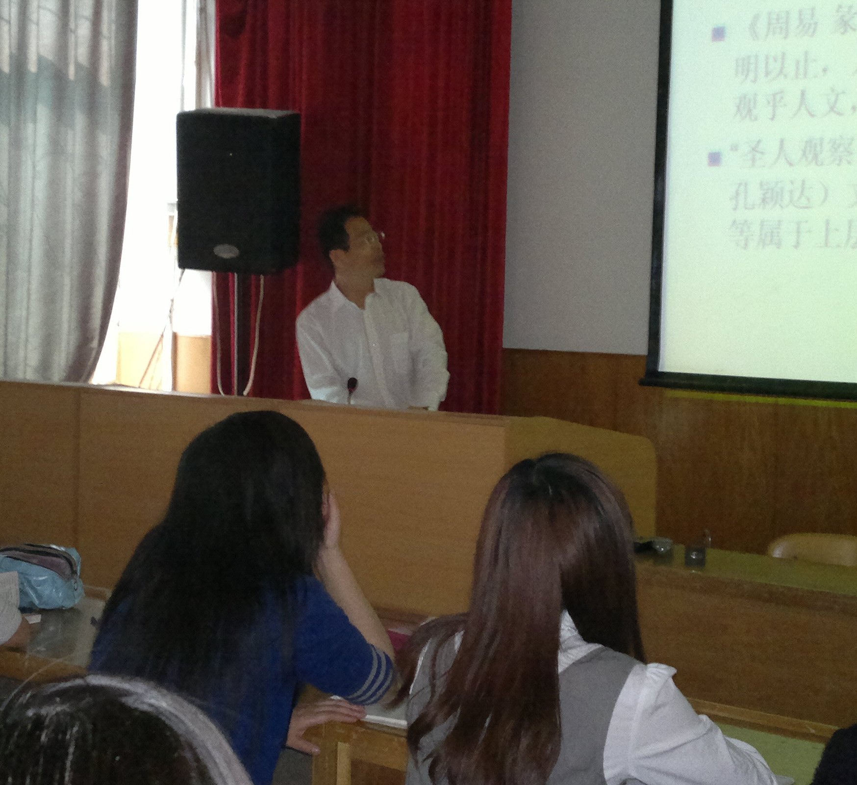 曾教授从文化的起源讲起,介绍了大文化(哲学、宗教)和小文化(风俗、衣食)以及深层文化的概念。