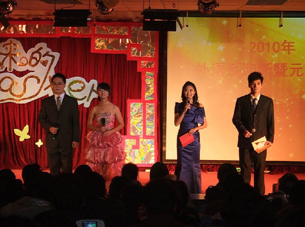 12月14日晚上7点半,郑州航院外语系2010年迎新暨元旦晚会在东校区01基础教学楼A203教室隆重举行。出席本次晚会的嘉宾有:校党委副书记郭秀华,教务处处长颜敏,土木建筑工程学院党总支书记赵健,保卫处副处长贾军,计算机科学与应用学院副主任王素立,学生处老师穆广强,外语系党总支书记郭银铃、主任杨欣欣、团总支书记耿三琳及辅导员高丽、王珊、王振涛等。外语系学生及其他院系部分学生观看了本次晚会。