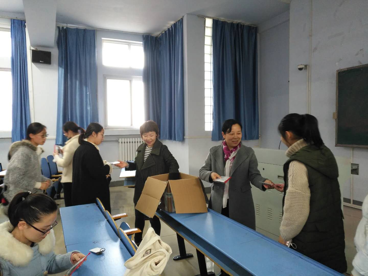本次大会分为三个环节,首先郭院长讲话,亲切地对考研学子表示慰问。她讲到,同学们要有好的心态,不断增强信心;劳逸结合,保持精力;在考研后期,同学应该与老师交流,及时反应复习情况,查漏补缺。接着,耿书记跟同学们谈到了坚定的信念是成功的桥梁,不言放弃才能获得胜利,学院是学子最坚强的后盾等内容,她鼓励同学们坚持到底,预祝同学们获得成功。随后,郭院长和耿书记给大家分发慰问品,给考研的学子带来温暖和最殷切的祝福。至此,大会接近尾声。