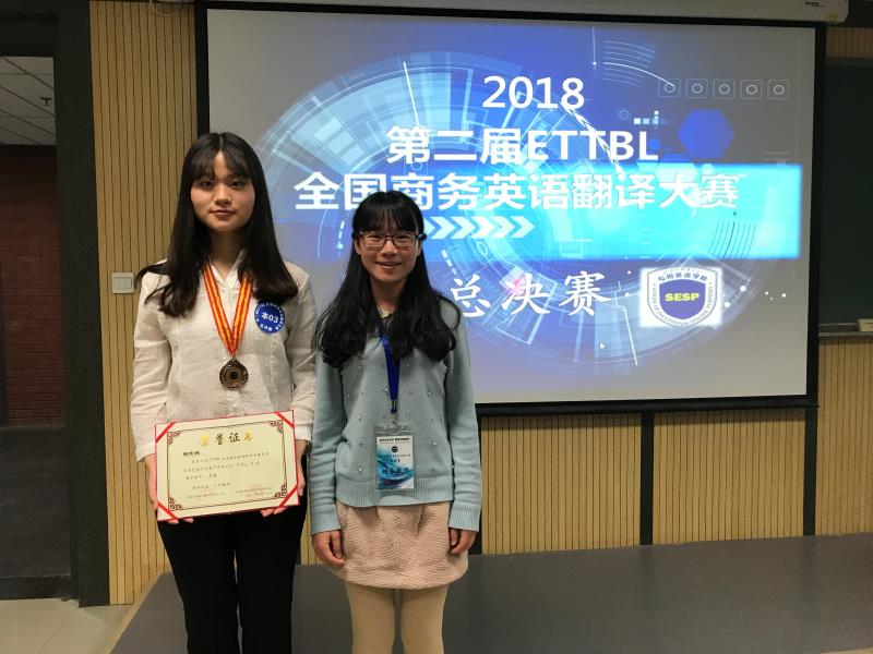 4月14-15日,第二届ETTBL全国商务英语翻译大赛总决赛在北京外国语学院国际大厦举行。外国语学院教师李静带领我院选手杨佳铭赴北京参加本科组口译总决赛。