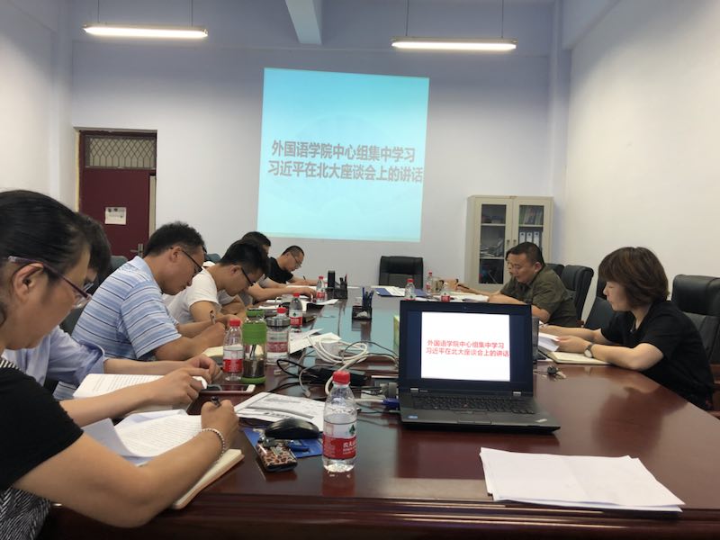 5月16日下午15:00,外国语学院党总支在05C516会议室召开中心组(扩大)学习会议。学习内容为《习近平在纪念马克思诞辰200周年大会上的讲话》和《习近平在北京大学师生座谈会上的讲话》(2018年5月2日),学院党总支委员及各党支部书记到场参加会议,会议由党总支书记许峰主持。