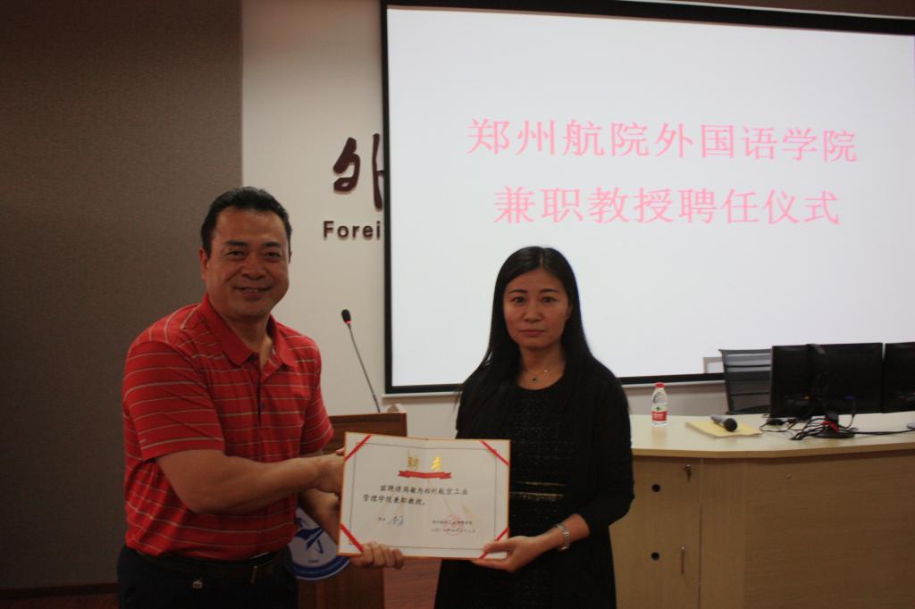 5月24日上午,郑州航空工业管理学院兼职教授聘任仪式在02A301举行,上海外国语大学周敏教授受聘为我校外国语学院外国语言文学学科兼职教授,副校长张锐出席聘任仪式并为其颁发了聘书。聘任仪式结束后,周教授做了题为“从多元文化主义到人类命运共同体”的学术讲座,师生们收获颇丰。