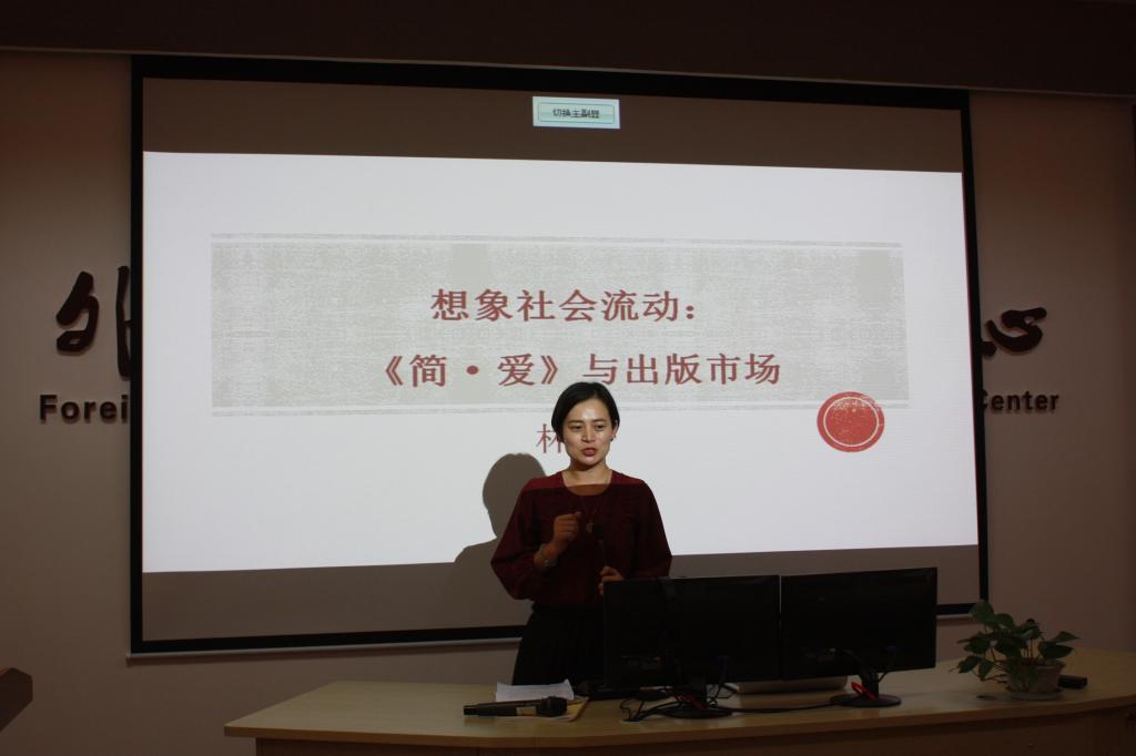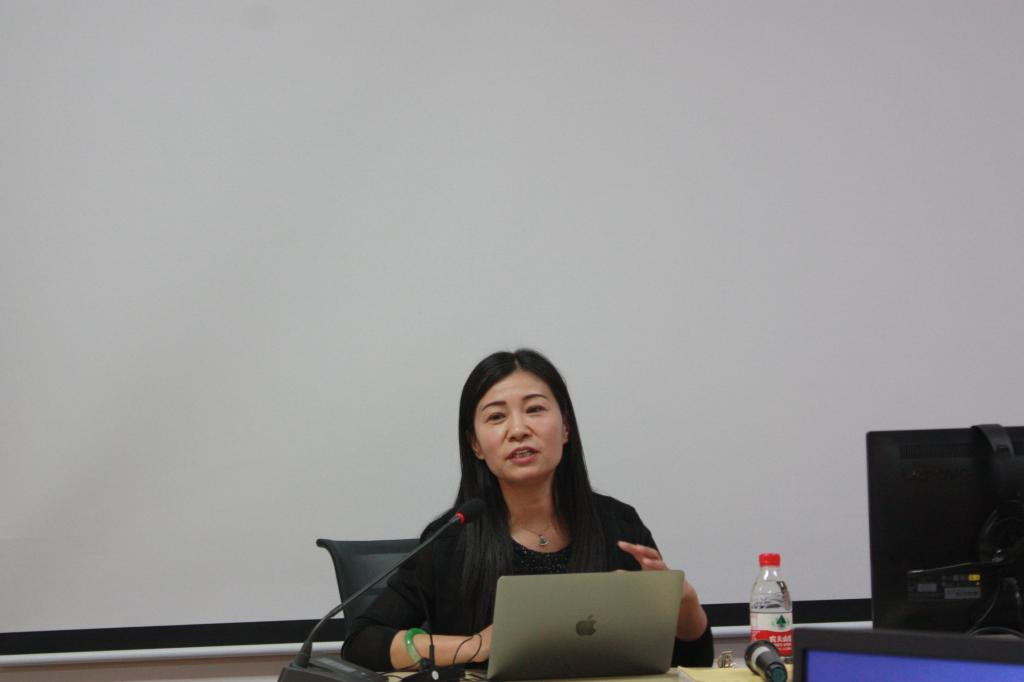 5月24日上午8:30-12:00在02A301外语实验室如期举行了外国语言文学工作坊,邀请上海外国语大学周敏教授及博士团队一行4人,和外国语学院博士教师和教授们共同参与,分别以主旨发言和分论坛的形式做了学术交流活动。参加外国语言文学工作坊的还有我院相关教师和学生,主旨发言由外国语学院院长郭银玲主持,之后分设英美文学、翻译与文化和语言学研究三个分论坛会场,分别由范晓航教授、袁帅亚博士和程淑芳副院长主持。