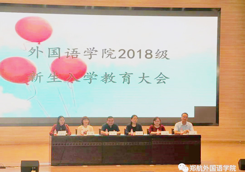 教师代表李亚培博士在发言中提醒同学们要不忘初衷,坚守自己的选择,缘分让我们在郑航外国语学院相遇,我们应当感激并努力奋斗。