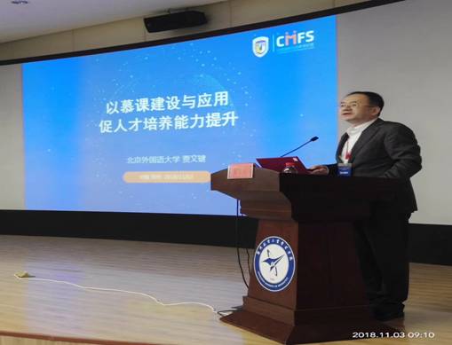 论坛共有八位专家进行了主旨发言。第一位发言嘉宾是北京外国语大学副校长贾文键教授作了题为“以慕课建设与应用促人才培养能力提升”的报告,报告详细介绍了北京外国语大学在慕课建设方面的探索与实践经验和成果,他指出中国高校外语慕课建设面临着巨大的机遇和挑战,急待提升建设和应用水平以促进外语学科发展,为一带一路人才培养发挥更大的支撑作用,同时也简叙了北外在外语慕课建设上的成绩和一些宝贵经验及方法。