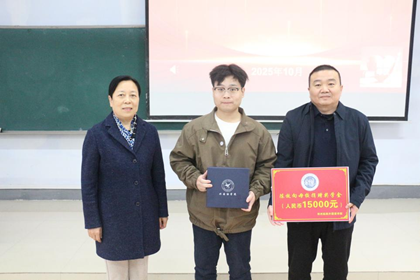 捐赠仪式伊始,院长郭银玲代表学院接受15000元的捐赠奖牌并为其颁发学院纪念品,许峰书记为陈放佩戴校徽。许峰书记代表学院致辞。他首先向陈放毕业后还心念母校发展并捐赠奖学金表示感谢,接着向出席仪式的领导和同学们介绍了陈放在校期间和工作之后的表现和所获的荣誉,号召同学们以陈放学长为榜样,夯实专业根基、锤炼实践本领,将个人成长融入国家发展,争做堪当民族复兴重任的时代新人。最后许峰书记承诺将会妥善使用好校友的每一份捐赠,让善意落地生根,让爱心薪火相传。陈放发表捐赠感言,他首先感谢学校和学院的培养,让自己能有机会有能力站到更到的舞台上为国家建设贡献力量,也希望学习学妹们能俯下身来,刻苦学习,提升专业能力,更好地成长成才。