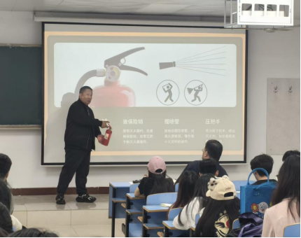 培训伊始,李金隆要求全体参会人员认真学习、学以致用,切实履行好宿舍安全员的相关职责。随后,李攀围绕宿舍常见火灾隐患、火灾预防要点、初期火灾扑救方法等内容开展消防安全专项讲解,现场演示了灭火器与火灾逃生面具的正确使用方法。